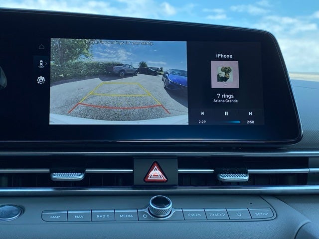 - Radio: AM/FM/HD/SiriusXM Display Audio -inc: 10.25" high resolution touchscreen display, navigation, SiriusXM data services: NavTraffic, NavWeather and Sports and Stocks w/3-month trial, 6 speakers, BlueLink+ connected car service, wired Apple CarPlay and Android Auto, Bluetooth® hands-free phone system, dynamic voice recognition, dual USB ports and speed-sensitive automatic volume control
