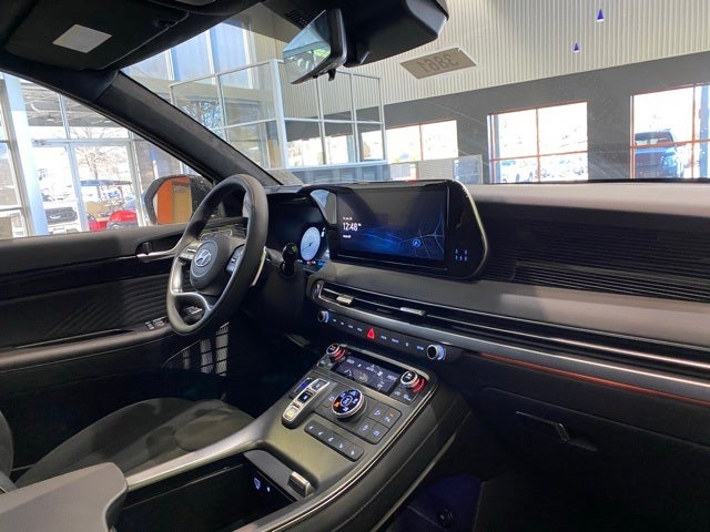 2025 Hyundai Palisade 4D Sport Utility Abyss Black Pearl Calligraphy Night Edition V6 AWD 8-Speed Automatic with SHIFTRONIC 19/24 City/Highway MPG Bluetooth®, Safety Package, Palisade Calligraphy Night Edition, 4D Sport Utility, AWD, Abyss Black Pearl, Black Leather, 12 Speakers, 4-Wheel Disc Brakes, AM/FM radio: SiriusXM, Apple CarPlay & Android Auto, Auto-leveling suspension, Brake assist, Electronic Stability Control, First Aid Kit, Four wheel independent suspension, Front dual zone A/C, Fully automatic headlights, harman/kardon® Speakers, Heads-Up Display, Heated & Ventilated Front Bucket Seats, Heated door mirrors, Heated rear seats, Heated steering wheel, Illuminated entry, Memory seat, Microfiber Suede Seat Trim, Navigation System, Option Group 01, Overhead console, Power Liftgate, Power moonroof, Rear air conditioning, Reclining 3rd row seat, Remote keyless entry, Roof rack, Security system, Spoiler, Steering wheel mounted audio controls, Turn signal indicator mirrors, Ventilated rear seats, Wheels: 20 x 7.5J Black Liquid Paint Alloy.