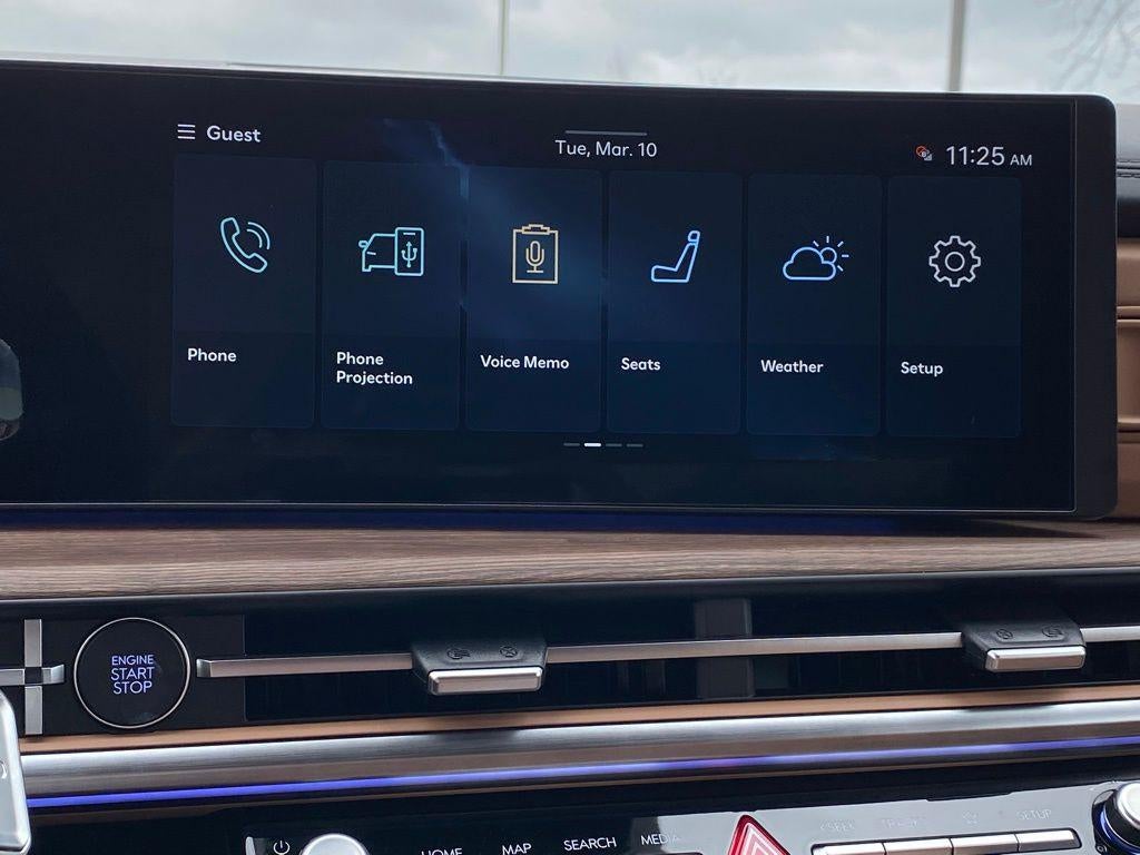 - Radio: AM/FM/HD Bose Premium Audio System -inc: 12 speakers including subwoofer, external amplifier, 12.3" wide touchscreen, wireless Apple CarPlay and Android Auto, Bluetooth® hands-free w/wireless audio streaming, dynamic voice recognition, USB connectivity, SiriusXM, wifi hotspot, Blue Link connected car system, navigation system including traffic flow w/incident data via HD Radio (HERE), OTA updates and rear seat quiet mode