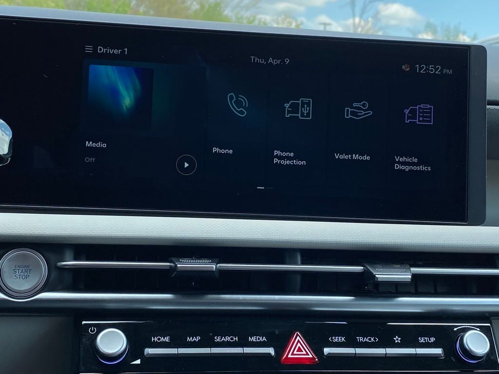 - Radio: AM/FM/HD Audio System -inc: 12.3" color touchscreen display, 6 speakers, SiriusXM satellite radio system (3-month trial subscription), wireless Apple CarPlay and Android Auto integration, controller OTA update capability, Blue Link connected car system and USB connectivity