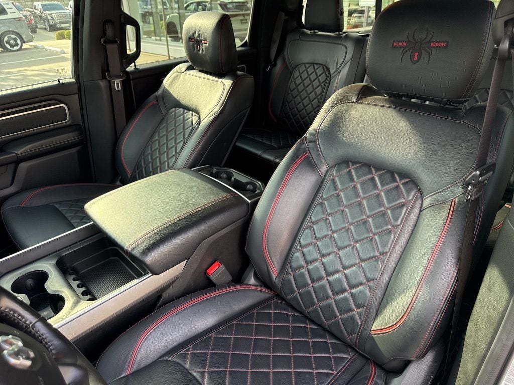 1500 BLACK WIDOW LOW MILES! CONVERSION TRUCK, 4D Crew Cab, HEMI 5.7L V8 Multi Displacement VVT, 8-Speed Automatic, 4WD, Diamond Black, 1-Year SiriusXM Radio Service, 1-Yr SiriusXM Guardian Trial, 12 Touchscreen Display, 3 Rear Seat Head Restraints, 3.92 Rear Axle Ratio, 33 Gallon Fuel Tank, 4 Way Front Headrests, 4-Wheel Disc Brakes, 48V Belt Starter Generator, 4G LTE Wi-Fi Hot Spot, 5-Year SiriusXM Traffic Service, 5-Year SiriusXM Travel Link Service, ABS brakes, Air Conditioning, Alloy wheels, Apple CarPlay, Brake assist, Compass, Delay-off headlights, Disassociated Touchscreen Display, Driver door bin, Dual front impact airbags, Dual front side impact airbags, Electronic Stability Control, For Details, Visit DriveUconnect.com, Front anti-roll bar, Front Center Armrest w/Storage, Front fog lights, Front reading lights, Front Seat Back Map Pockets, Front wheel independent suspension, Fully automatic headlights, Google Android Auto, GPS Antenna Input, GPS Navigation, HD Radio, Heated door mirrors, Illuminated entry, Integrated Center Stack Radio, Leather steering wheel, LED Footwell Lighting, Low tire pressure warning, Occupant sensing airbag, Outside temperature display, Overhead airbag, Overhead console, Panic alarm, ParkView Rear Back-Up Camera, Passenger door bin, Passenger vanity mirror, Power door mirrors, Power steering, Power windows, Radio: Uconnect 12 w/Navigation, Rear 60/40 Folding Seat, Rear anti-roll bar, Rear seat center armrest, Rear step bumper, Remote keyless entry, SiriusXM Satellite Radio, SiriusXM Traffic Plus, SiriusXM Travel Link, SiriusXM w/360L, Speed control, Split folding rear seat, Steering wheel mounted audio controls, Sun Visors w/Illuminated Vanity Mirrors, Tachometer, Telescoping steering wheel, Tilt steering wheel, Traction control, Trip computer, USB Host Flip, Variably intermittent wipers, Voltmeter.