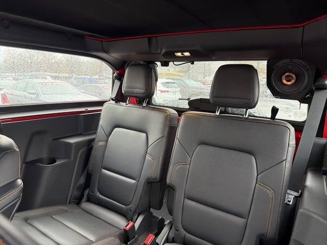 Bluetooth®, Safety Package, CLEAN CARFAX, Bronco Badlands, 2D Sport Utility, 2.7L EcoBoost V6, 10-Speed Automatic, 4WD, Race Red, Black Onyx w/Leather-Trimmed/Vinyl Bucket Seats, 4-Wheel Disc Brakes, 4.7 Axle Ratio, 7 Speakers, ABS brakes, Air Conditioning, AM/FM radio: SiriusXM with 360L, AM/FM Stereo, Auto High-beam Headlights, Brake assist, Compass, Convertible HardTop, Convertible roof lining, Delay-off headlights, Driver door bin, Driver vanity mirror, Dual front impact airbags, Dual front side impact airbags, Electronic Stability Control, Emergency communication system: 911 Assist, Equipment Group 331A Standard Package, Exterior Parking Camera Rear, Front anti-roll bar, Front Bucket Seats, Front Center Armrest, Front reading lights, Front wheel independent suspension, Fully automatic headlights, Glass rear window, Heated door mirrors, Illuminated entry, Integrated roll-over protection, Leather Shift Knob, Low tire pressure warning, Marine Grade Vinyl Bucket Seats, Navigation Removal, Occupant sensing airbag, Outside temperature display, Overhead airbag, Overhead console, Panic alarm, Passenger door bin, Passenger vanity mirror, Power door mirrors, Power steering, Power windows, Radio data system, Radio: 7 Speakers w/Subwoofer, Rear window defroster, Rear window wiper, Remote keyless entry, Security system, SiriusXM Radio w/360L, Speed control, Split folding rear seat, Steering wheel mounted audio controls, SYNC 4, Tachometer, Telescoping steering wheel, Tilt steering wheel, Traction control, Trip computer, Variably intermittent wipers, Voltmeter, Wheels: 17 Machined Carbonized Aluminum.