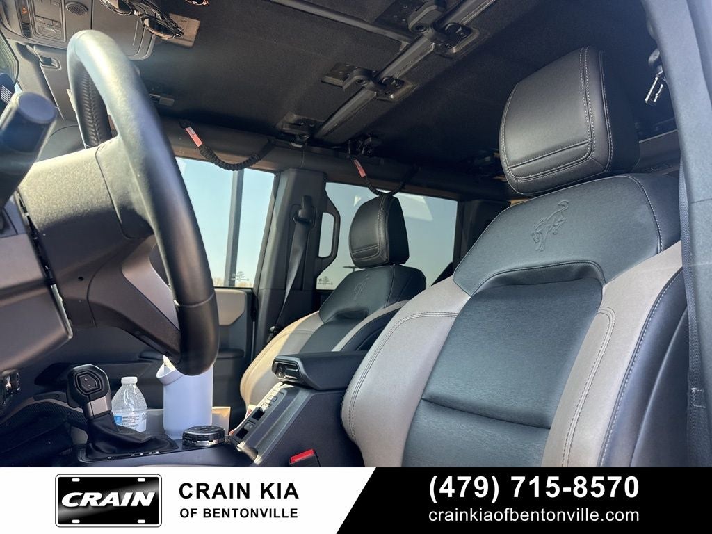 The Bronco's impressive features don't stop there. Enjoy the convenience of SYNC 4 infotainment, Rear-Window Defroster & Washer, and a host of advanced safety technologies, including Brake Assist, Electronic Stability Control, and Traction Control. The Marine Grade Vinyl Bucket Seats and Hard Top Sound Deadening Headliner provide both comfort and refinement, while the Carbonized Gray Molded-In-Color Hard Top and Front Row Top Panels Storage Bag offer versatility and protection.