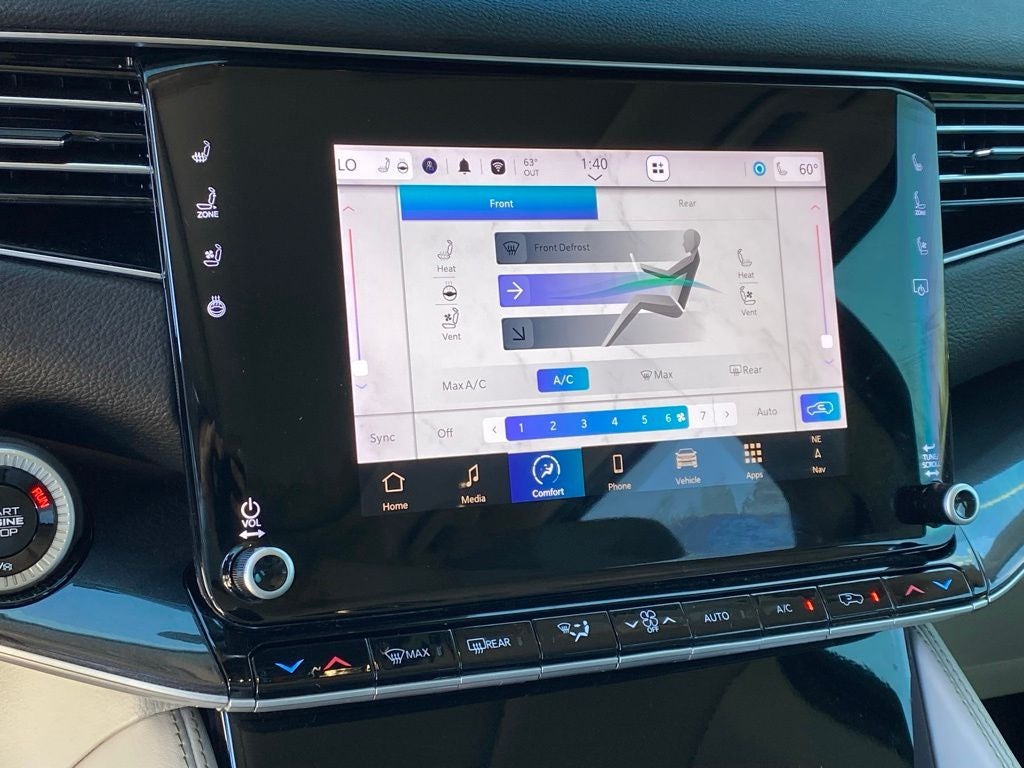 Step inside and you'll be greeted by a spacious and well-appointed cabin, designed with your comfort and convenience in mind. The Wagoneer's premium leather-trimmed seats offer unparalleled support and luxury, while the heated and ventilated front seats ensure you stay cozy in any weather. The 10.1-inch Uconnect 5 Nav infotainment system keeps you connected and entertained, seamlessly integrating with your smartphone via Apple CarPlay and Android Auto.